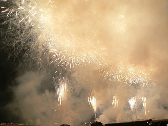 行きのタクシーの運ちゃんによると、足立とかの花火が天候でダメだったんで例年より凄いとか。